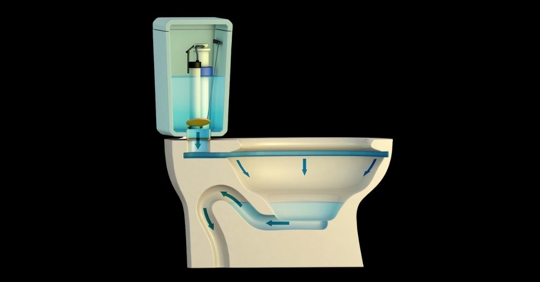 A siphon effect then occurs, emptying the bowl, and the flapper closes again, sealing the tank.